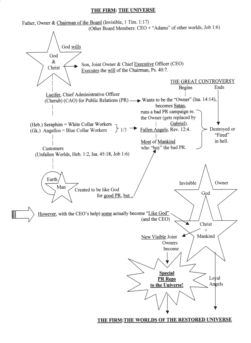 I barely have an idea that the depiction below is somewhat near accurate, but it was a fun little thing to do. If anyone would like to make a more accurate or more detailed flowchart of this Universe-as-a-Business version of the history of The Great Controversy Between Christ & Satan then have at it and have fun yourself, and may God, our Father, and Chairman of the Board be glorified!